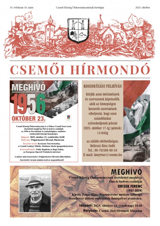 Feltöltésre került a CSEMŐI HÍRMONDÓ 2025. évi októberi száma