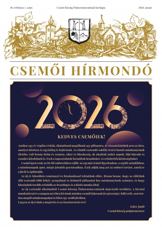 Letölthető ide kattintva, de elérheti az AKTUÁLIS menüponton belül a Csemői Hírmondó almenüpontra kattintva, a 2026-os kategórián belül. Ugyanitt a HÍRMONDÓ korábbi lapszámai is elérhetőek!